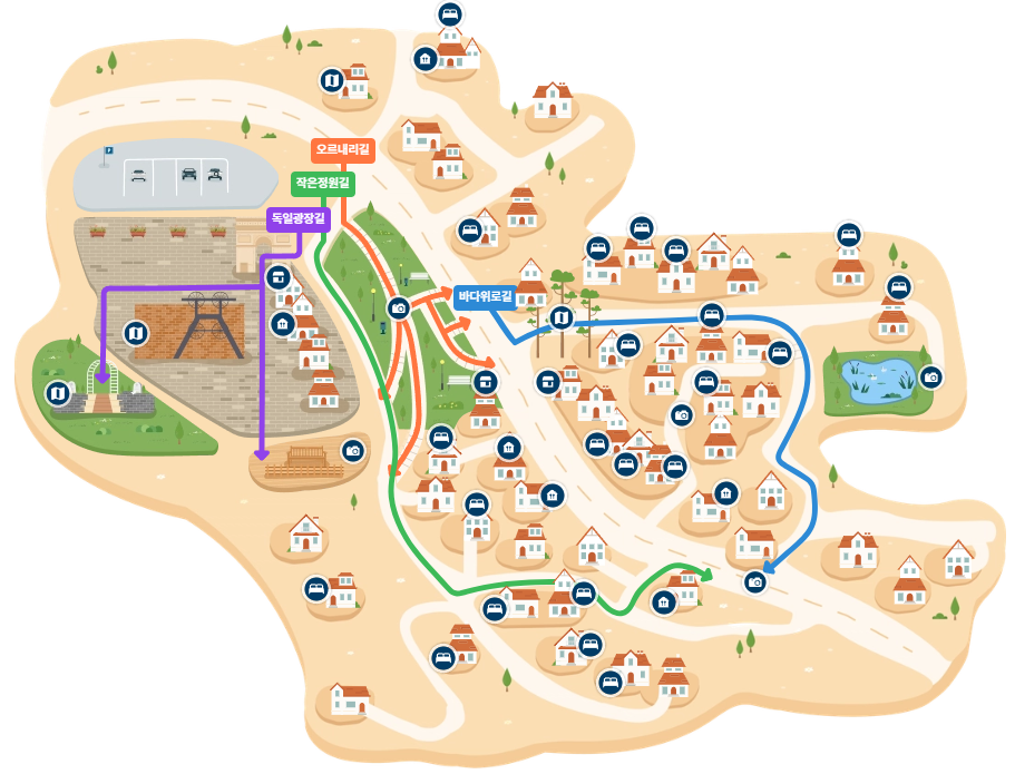 - 마을 탐방: 독일마을은 작은 마을이지만, 구석구석 볼거리가 많습니다. 마을을 걸으며 독일식 건축물과 아름다운 정원을 감상해 보세요.